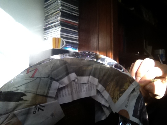 Recouvrir la Cloche de papier ALu , enduire le journal de colle avec le pinceau, disposé autour de la forme à mouler